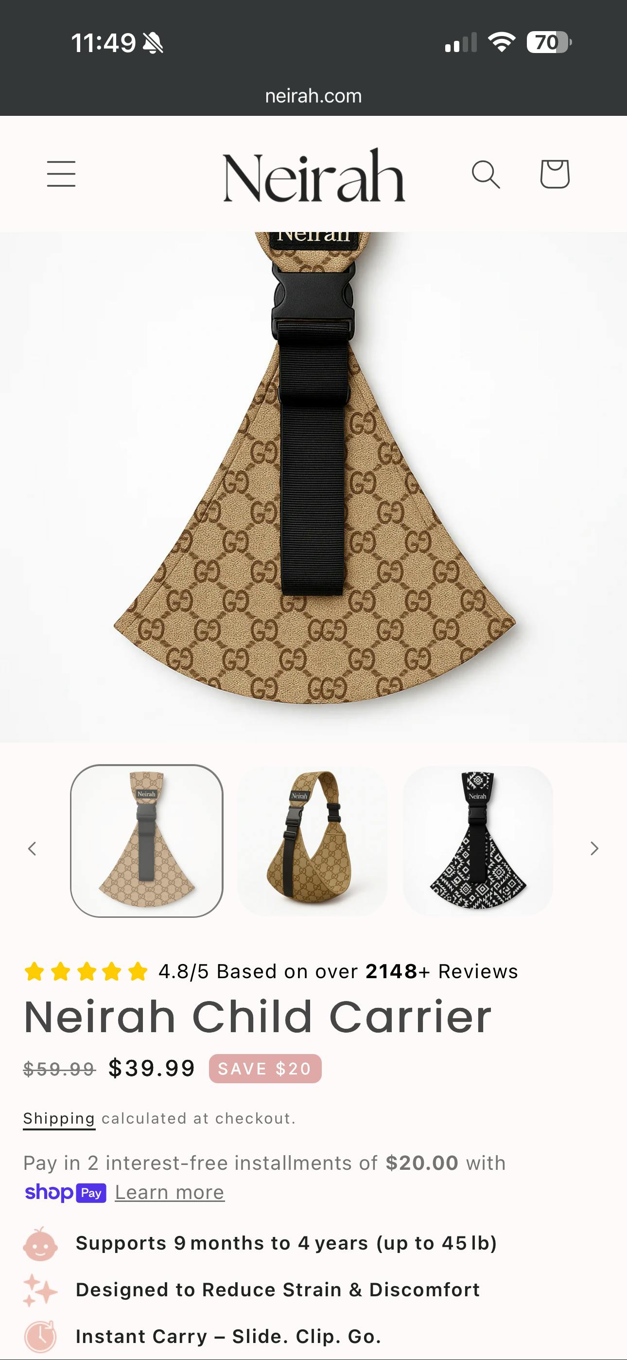 Neirah evenly distributes your baby’s weight & lets you carry your child effortlessly. No more back, hip, or shoulder pain.