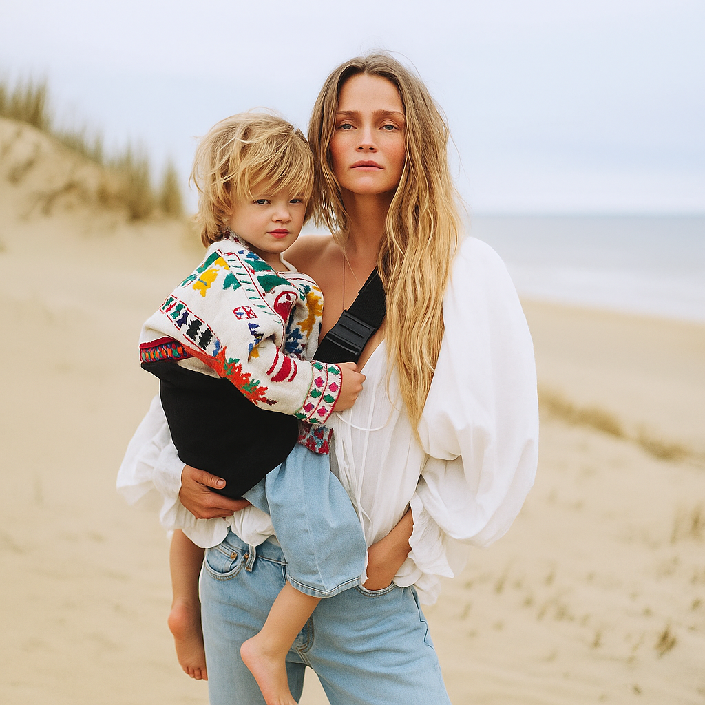 It’s the perfect solution for that tricky stage when they’re too big for baby carriers but still want to be in your arms.